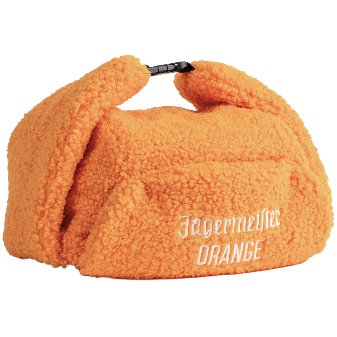Jägermeister Orange Trappermössa håller dig både varm och snygg, perfekt för kyliga dagar på afterskin eller vinterpromenaden. Tillverkad i mjuk polyester med broderad Jägermeister Orange logotyp framtill.